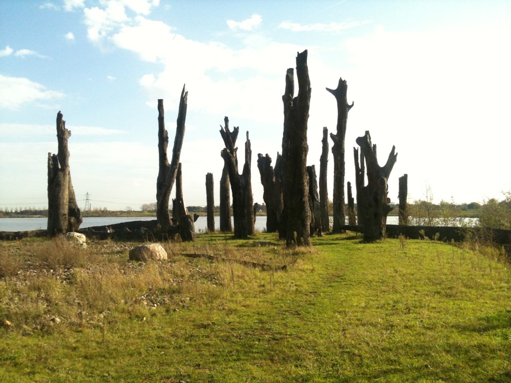 een houten stonehenge nu bijeengebracht