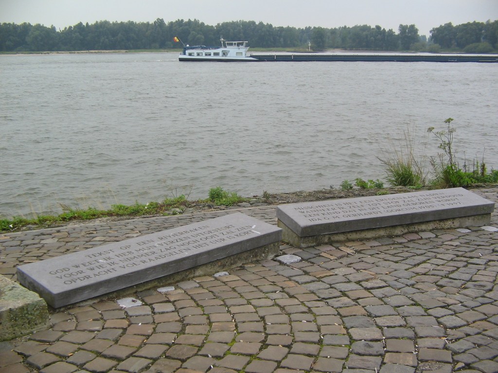 Aan de Merwede bij Gorcum is dit rivierbaken aangebracht met een citaat uit haar werk ter herinnering aan de dichteres, die in deze stad geboren werd. De Nederlandse rivieren hebben haar steeds geïnspireerd. De bovenstaande tekst is te vinden in haar bundel Het sterreschip uit 1979. De klassieke wereld – zij was lerares oude talen- en de streng geordende elementen van het rivierlandschap spiegelen elkaar voor haar en roepen een taalwereld op waarin de emoties over tegenstellingen zich kunnen schuilhouden.